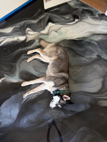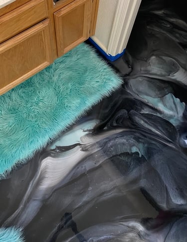 Blake is amazingly creative and artistic. So with his learned skills on how to do this stuff, he was able create an actual work of art on my floor. And it's durable?! Say what?