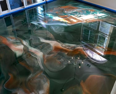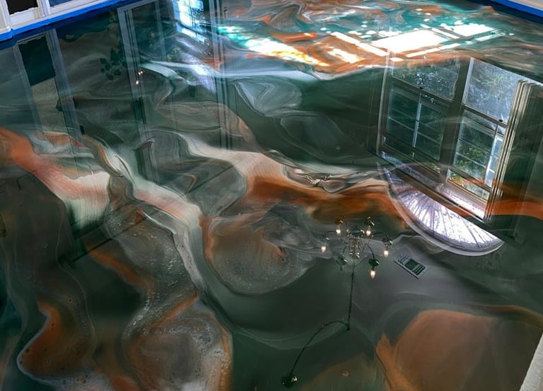 π Metallic epoxy delivers depth and movement without high maintenance.